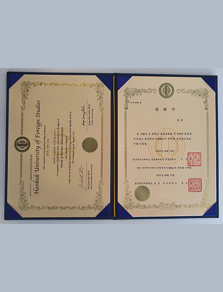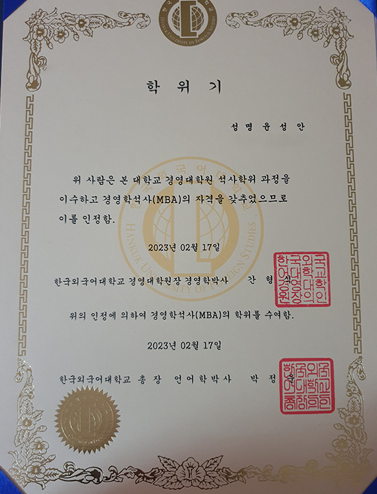 현재는 마지막 학기 재학하면서 타 대학 박사과정에 지원중인데, 우리 한국외국어대학교 경영학 석사학위가 큰 도움을 주고 있습니다. -
